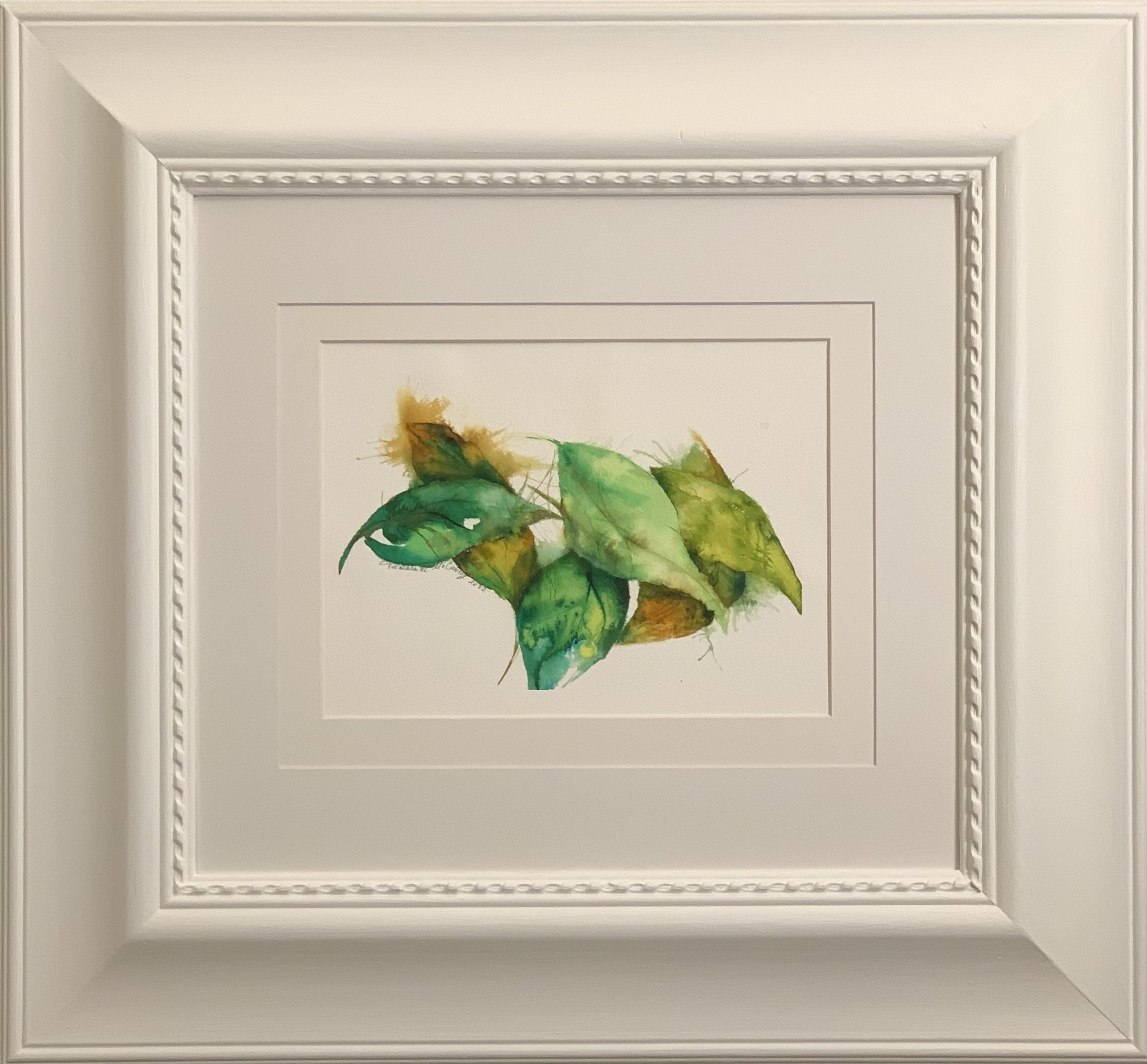 LEAVES OF EMERALD is a part of the Emerald Exploration series. The inspiration for this piece comes from quiet moments outdoors, where change and stillness exist side by side. This ink painting features a delicate arrangement of green and brown leaves that captures the quiet elegance of nature in transition. Shades of lush emerald green blend into warm, earthy browns, suggesting a gentle shift between seasons. Several translucent ink washes were applied to the paper, allowing the delicate veins and subtle gradients to emerge and giving each leaf a soft sense of movement.